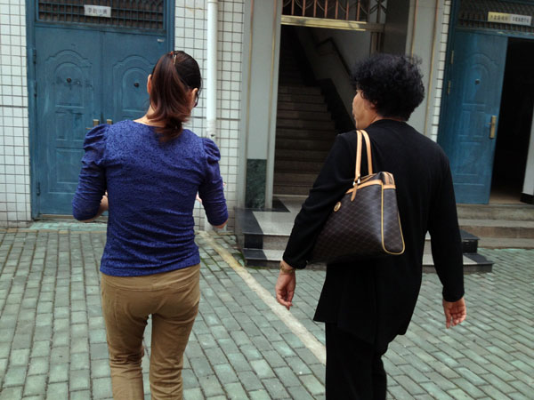刘老师向温主席介绍班级情况