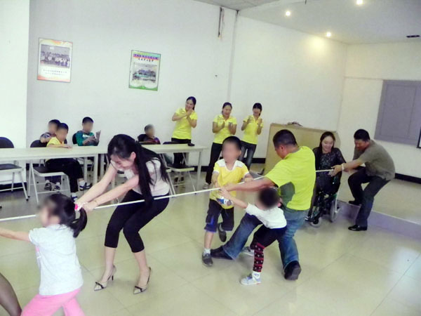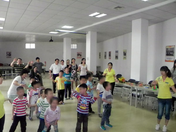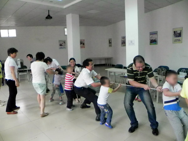小朋友和大朋友们玩游戏,气氛真热烈!