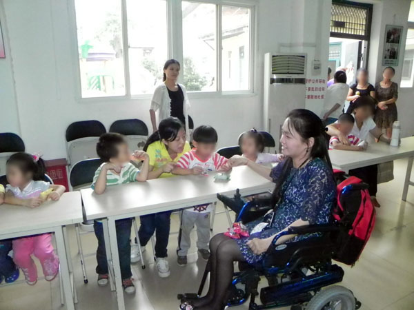 9月25日中国青年联合会的叔叔阿姨带着双节的祝福和礼物看望小朋友。