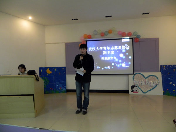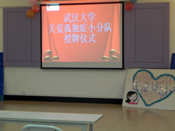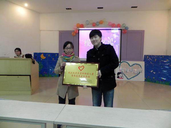 11月22日,武汉大学青年志愿者协会的大哥哥大姐姐们来中心与学校签定帮扶协议,在本中心成立关爱独孤症儿童青年志愿者服务站,定期过来协助小朋友学习和游戏。