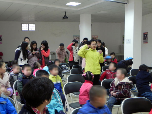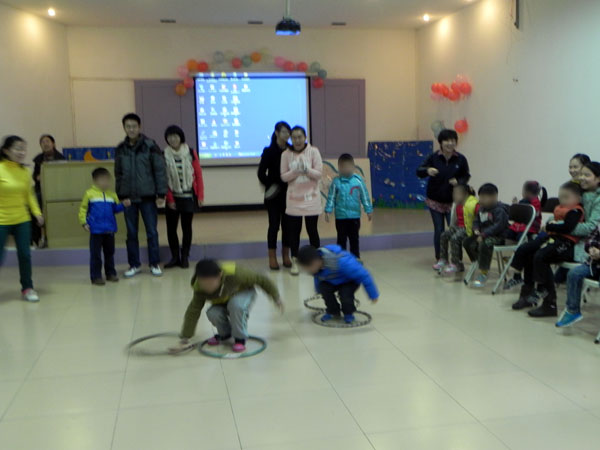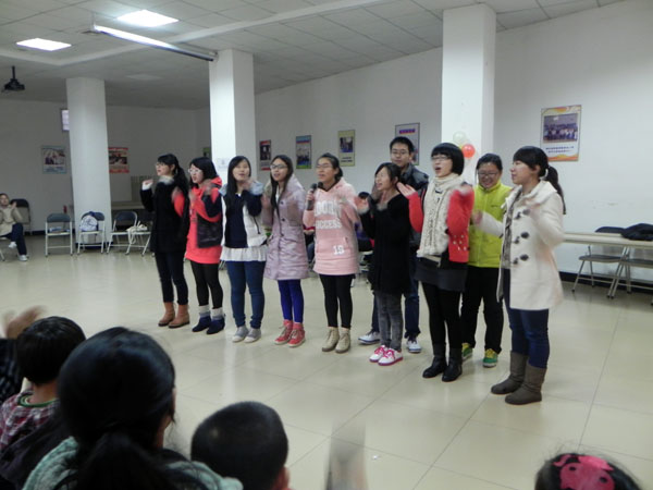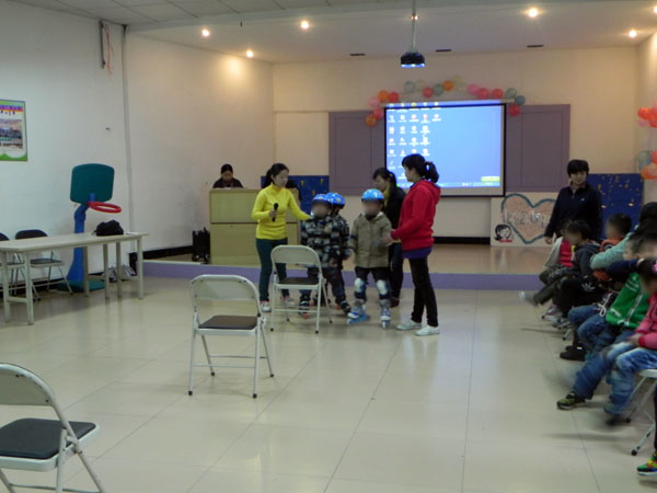 中心刘老师代表全体小朋友欢迎大哥哥大姐姐们。
