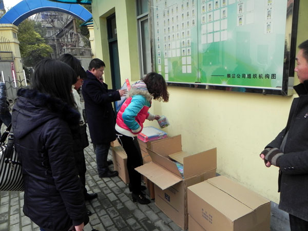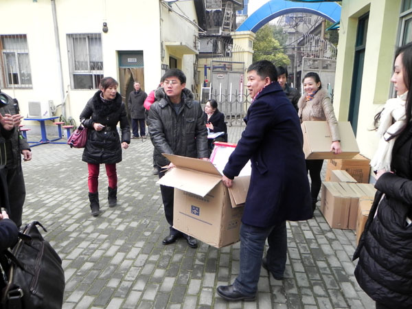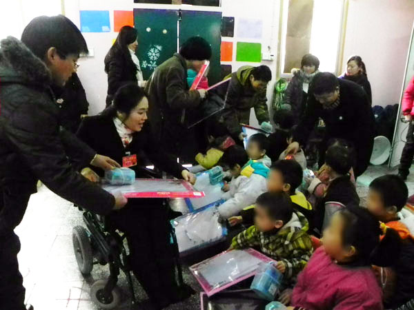 1月6日,全国道德模范、武汉市人大代表董明姐姐和武汉市青年联合会的爱心人士来中心看望小朋友,给孩子们捐赠学习用具。