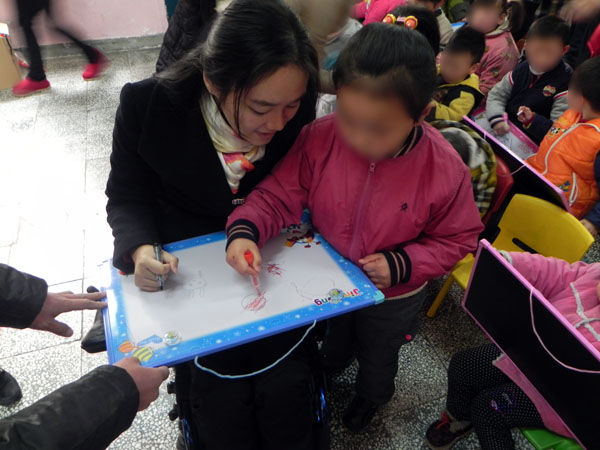 董明姐姐和小朋友一起画画