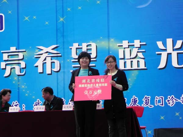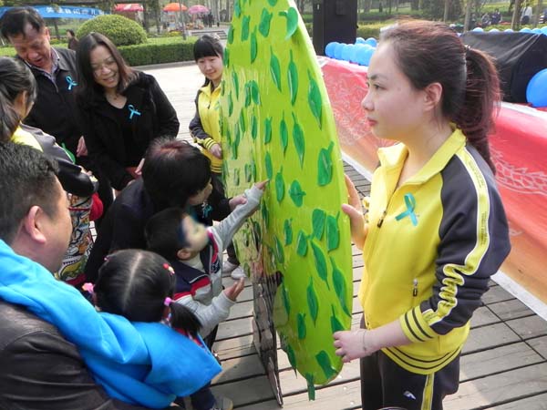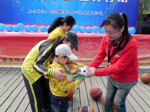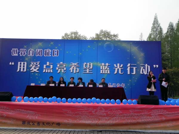 4月2日,中心在解放公园广场举行了“用爱点亮希望,蓝光行动---世界自闭症日”大型活动。省、市各级残联领导莅临本次活动,并捐助了慰问款。感谢阿斯利康(中国),沃尔玛徐东店,江岸区辅读学校,武汉大学志愿者协会,长江商报,武汉晨报,武汉晚报,楚天都市报,武汉电视台,湖北公共频道对本次活动的大力支持!