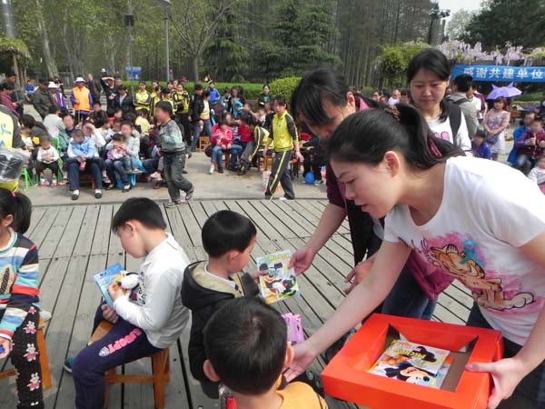 阿斯利康、沃尔玛徐东店代表给参加现场游戏的小朋友们发放奖品。