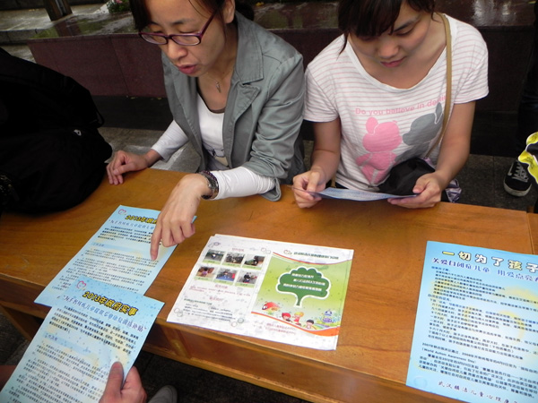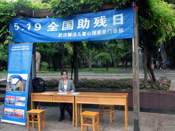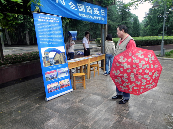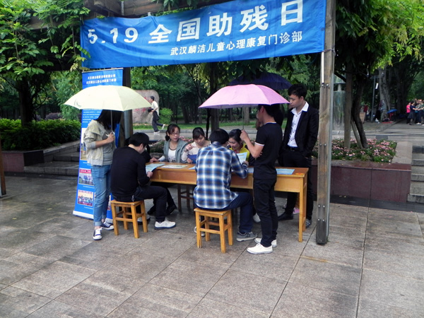 5月19日是全国助残日,18日中心在解放公园和武汉大学开展助残日关注自闭症宣传活动,武汉职业学院和武汉大学的志愿者们在宣传点协助宣传。