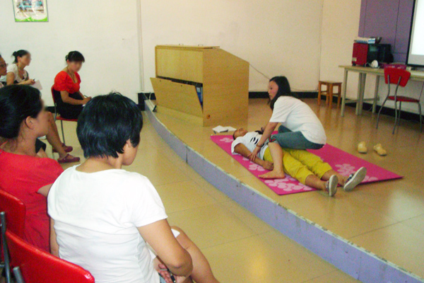 7月25日周四下午,中心在多功能厅开展了免费特殊儿童运动讲座,不少家长到场听课。运动室彭老师主讲并现场演示协助方法。