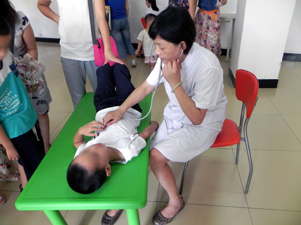 今天上午,硚口区妇幼保健院李院长和书记,主任及医师带着仪器来中心为自闭症及发育障碍的学生体检。
