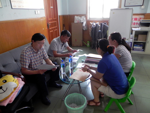 江岸区残联刘理事长、张科长来中心检查自闭症儿童项目补助情况,了解中心整体教学情况和中心遇到的困难,领导们表示要向市里反映多争取一些优惠政策。