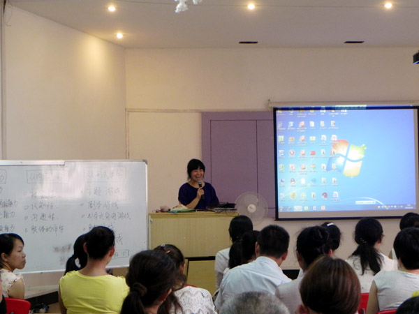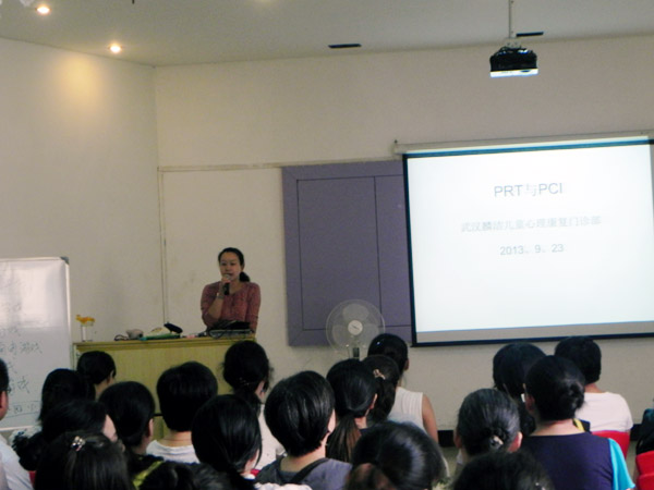 上午开始的免费PRT培训由李俊老师和王芬老师主讲,一位家长代表分享了培训心得。