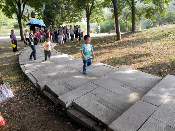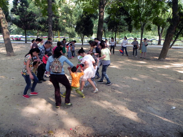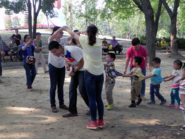 看完菊展,老师和孩子们在空地上做起了游戏。