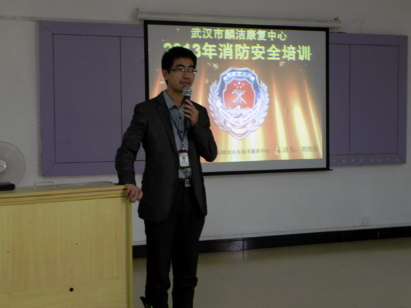 24日下午,中心邀请武汉市消防协会的刘兆全教官来中心作消防培训。中心的全体学生、家长和老师在多功能厅学习了消防知识,并进行了一次消防演习。