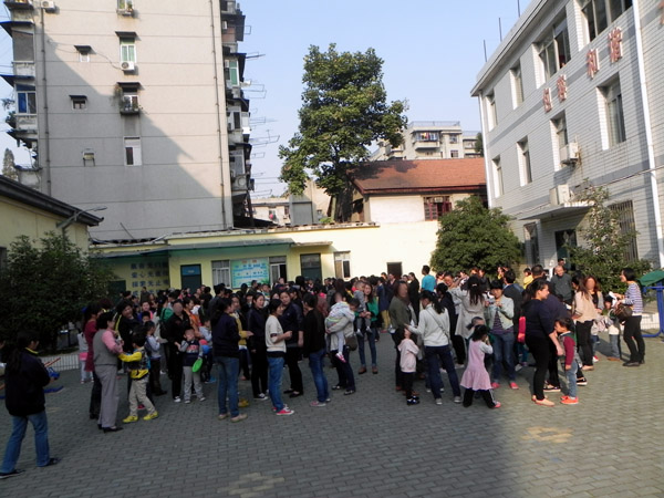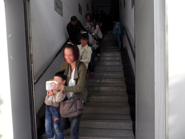 二楼学生和家长靠右边迅速下楼。