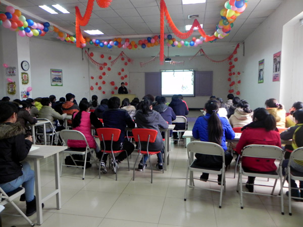 中心的老师们正在聆听香港复康会曹梦安老师详细的讲解