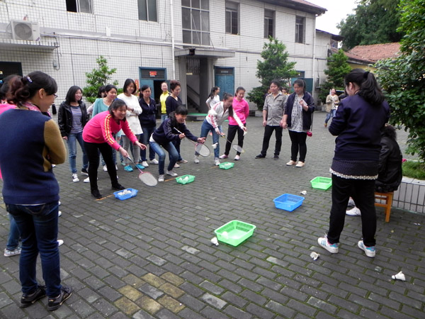 今天在中心操场举行了2014年第一季度全员工会活动--趣味运动会,有个人项目和团体项目,跳绳、运乒乓球、羽毛球入框,两人三足等项目。老师们在活动中放松身心,愉快地度过运动会的欢乐时光。