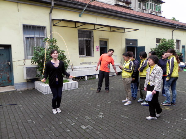 哇,进啦,得分 定时计数跳绳相当费体力哦~~ 玩得真开心啊! 加油加油!观赛的老师喊声不断,笑声不断。