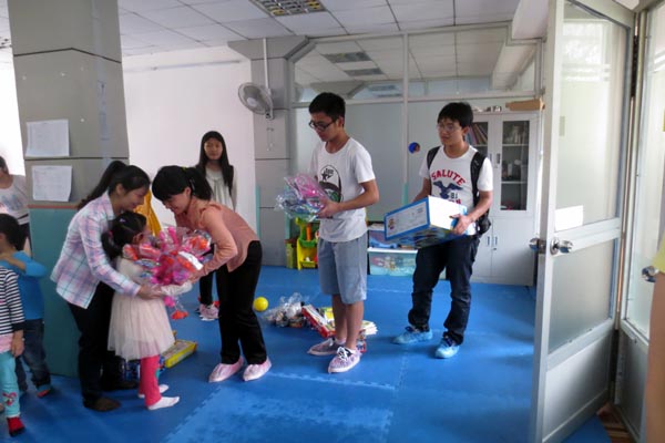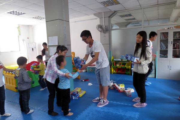 今日下午,武汉大学外国语言文学学院青年志愿者协会将价值2900余元的物资捐赠给中心,感谢他们的爱心之举。