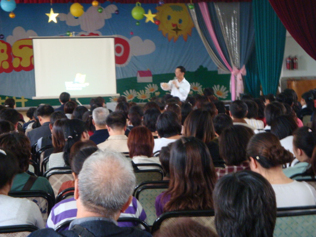 黄伟合博士在湖北省机关直属第二保育院为家长们讲解积极家教