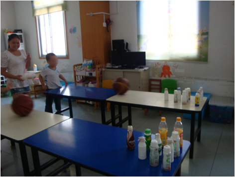 教孩子们打“保龄球”