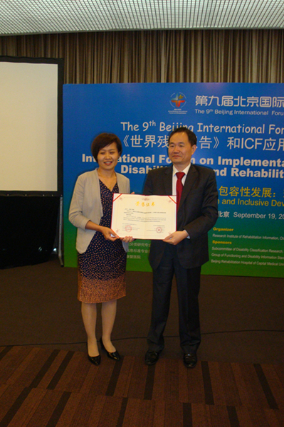 2014年9月21日,第九届国际康复论坛《世界残疾报告》和ICF应用与康复咨询分论坛在北京国家会议中心303B室举行。本次论坛的主办方为中国康复研究中心康复信息研究所/世界卫生组织国际分类家族中国合作中心,协办单位包括:首都医科大学附属北京康复医院、中国残疾人康复协会残疾分类研究专业委员会、中国卫生信息学会卫生信息标准专业委员会功能和残疾标准学组.