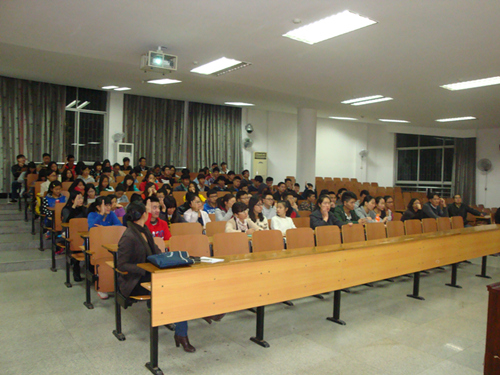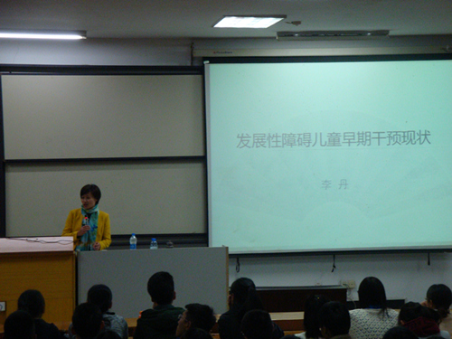 应用心理学和特殊教育系的学生听李丹主任介绍发展性障碍儿童的现状