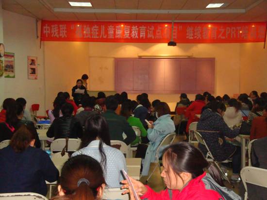 我中心主任李丹、副主任刘荣连、沈薇、王芬等对PRT基础理论及运用(激发和维持孩子的语言学习动力、发展孩子的第一批语言)做了系统、详细地介绍。学员认真听课,积极参与并完成课堂练习。