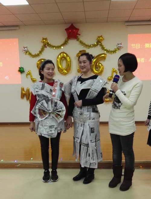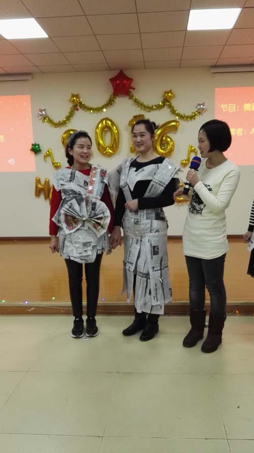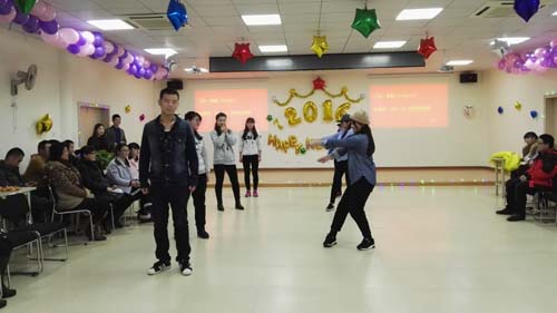 联欢会上员工们自编自演,表演形式丰富多彩,有歌曲、舞蹈、互动游戏等等.他们用各自不同的方式共同抒发了对中心无限的热爱,表达了对美好生活的向往和憧憬.