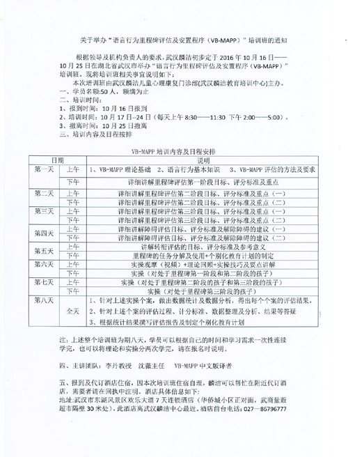 关于举办应用行为分析之语言行为评估VB-MAPP培训班的通知