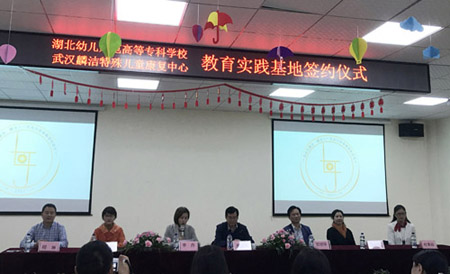 2015年,湖北幼儿师范高等专科学校开设特殊教育专业,并聘请武汉麟洁特殊儿童康复中心主任进行授课,经过三年的实践与交流,双方达成一致合作意向,共建实践教学基地,为特殊儿童康复教育引进专业人才。