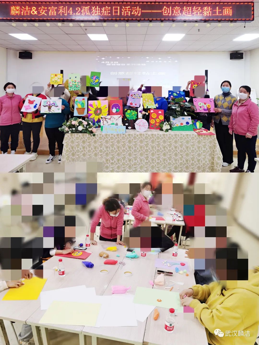 武汉麟洁康复医疗中心、武汉麟洁综合门诊部、和黄石麟洁康复中心在保证环境及人员安全的前提下全面开展了创意超轻纸黏土画舒缓瑜伽活动。此活动目的为在交流孤独症干预方针的同时,加强麟洁与家庭的纽带作用,提供对家庭的支持作用。与此同时,麟洁就此特殊的日子呼吁社会共同努力,关心、关爱孤独症人士,了解孤独症的相关知识,掌握简单的孤独症干预技能。