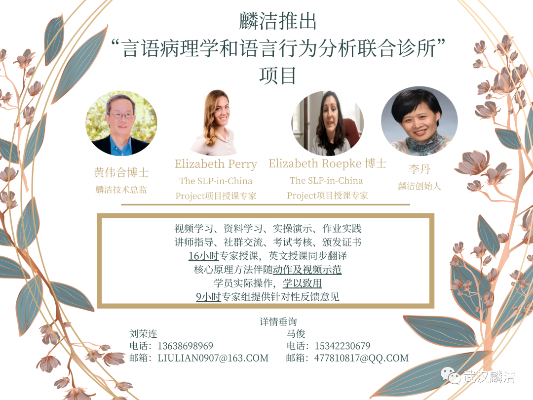 麟洁就当下市场痛点推出:“言语病理学(SLP)和语言行为分析联合诊所”项目。围绕孤独症及相关发展障碍及沟通障碍人群的言语语言治疗问题,由麟洁技术总监黄伟合博士主导,联合美国Elizabeth Perry专家和Elizabeth Poepke博士,将国际上主流的科学干预方式,通过理论、工具、实操的切入点针对/个别性的授予到家长和专业人员。