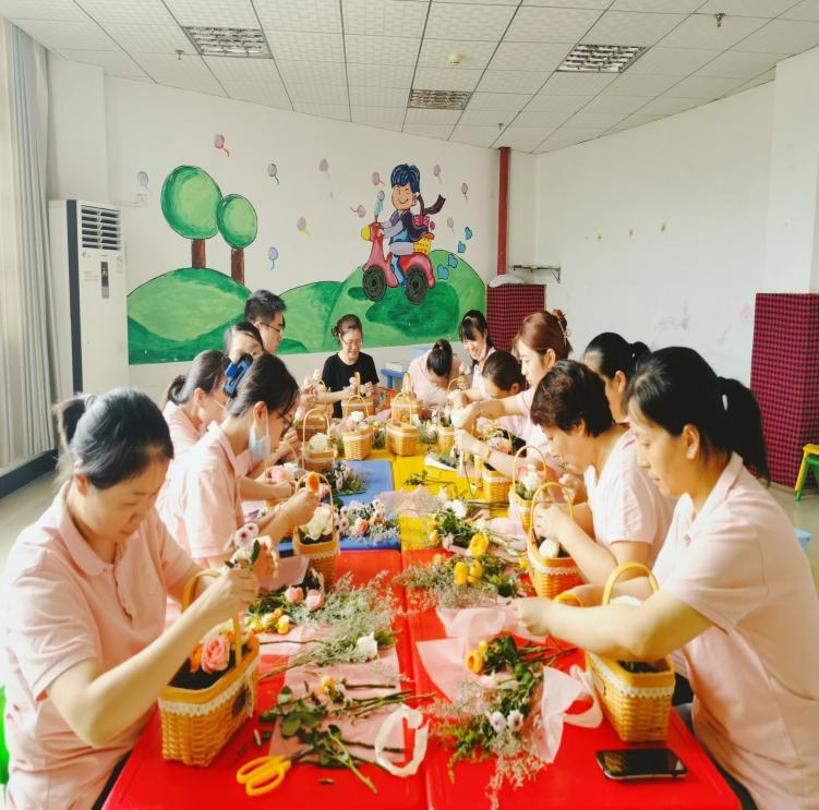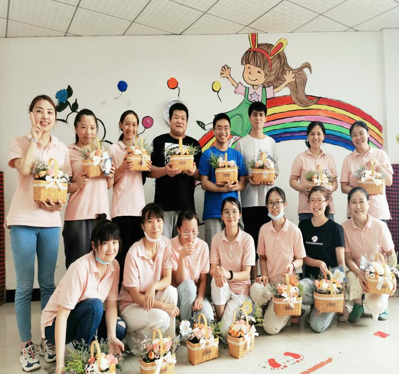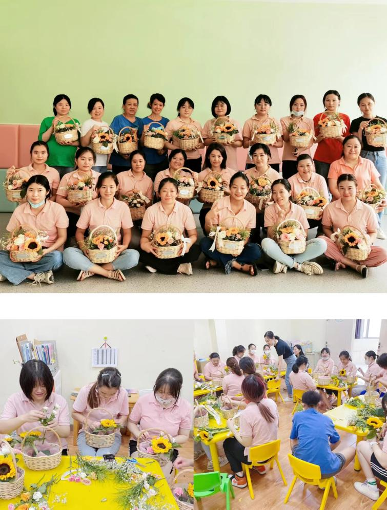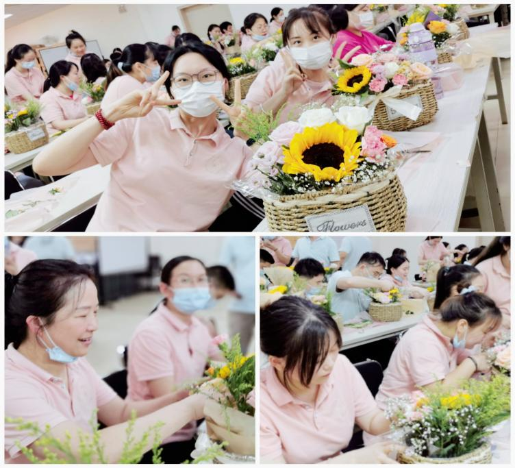 当然,过程也是相当开心的。大家齐动手,剪枝、造型、再小心翼翼插入花篮中。向日葵、玫瑰、小雏菊、满天星等花材在大家的手中显得格外的娇艳呢。谈笑声中,你看我的,我看看你的,相互欣赏着各自的作品。一篮一花,一室芬芳,一心欢愉。大家都纷纷表示,期待下次的活动。