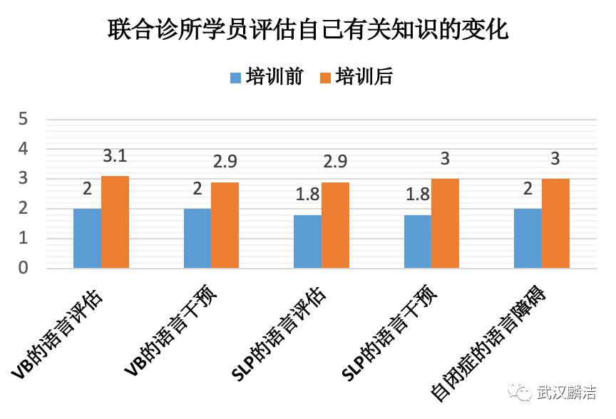 图一、学员们对比自己在参加培训以前和以后有关知识能力的变化